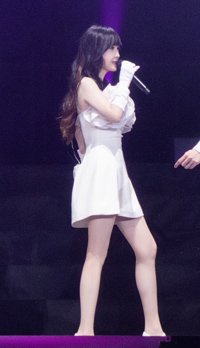 高清原图 699 × 1217, 返回图集:周慧敏穿丝袜白裙在演唱会表演