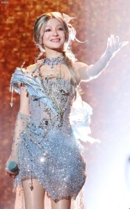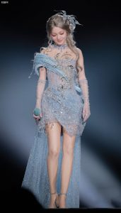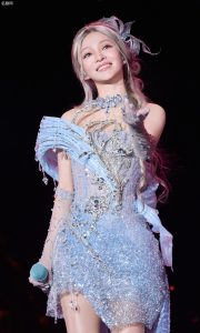 冰雪女王张韶涵身着星光裙,一双美腿在丝袜高跟的加持下更显修长。