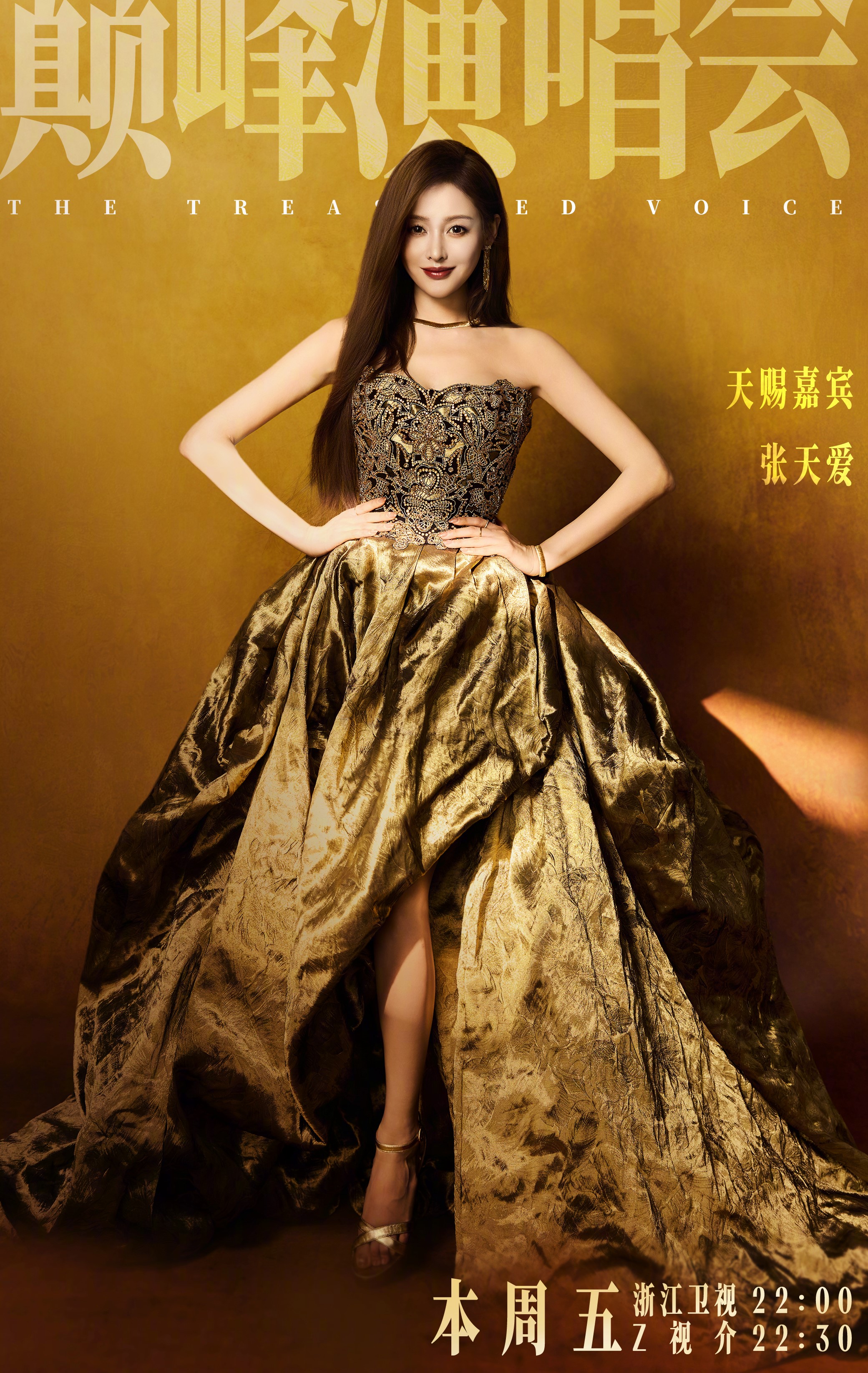 张天爱穿黄金色抹胸礼服半露玉足,高清美脸红唇迷人(11/11)
