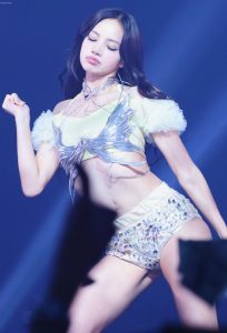 LISA紧身胸衣配百褶裙,苗条身材下的修长美腿太吸睛。