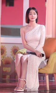 张嘉倪穿短裙翘二郎腿坐姿香肩半露
